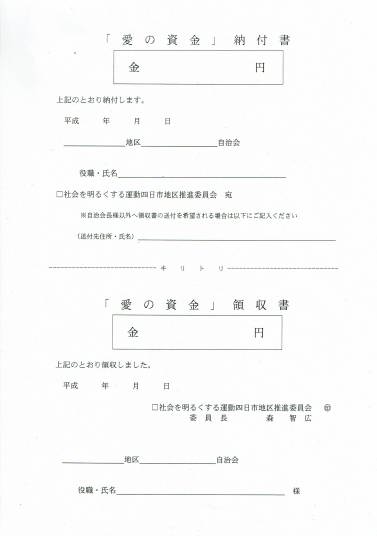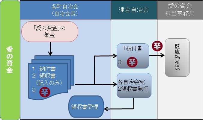 集金時期=自治会長会議当日。「社会福祉協議会」より領収書が発行される。(平成26年度は、8月8日)